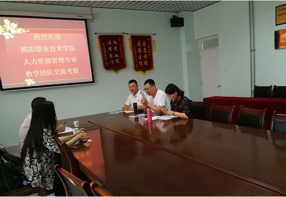 在三所公司分别召开的座谈会上,人力资源管理专业负责人分别介绍了专业特色、实训室建设、校企合作、技能竞赛、团队建设等方面的主要经验和做法。田德刚老师介绍了公司人力资源管理专业的基本情况及本次考察学习的目的,并对三所公司的热情接待表示感谢。交流完,两位教师又分别考察了三所公司的人力资源管理沙盘实训室、人员素质测评实训室和商务中心等。