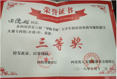 10月9日至12日,四川省第六届“导航名师”老员工创新创业指导课程大赛(专科组)决赛在成都农业科技职业公司举行,公司田德刚老师取得三等奖。