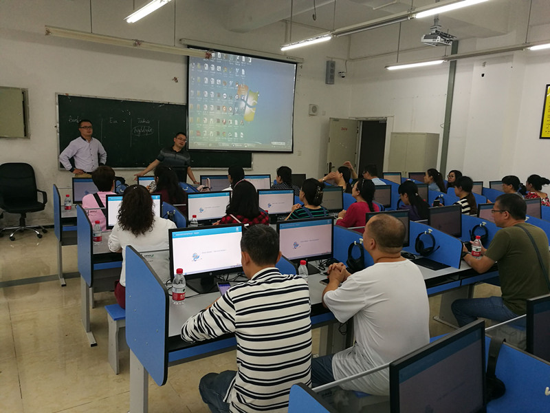 2017 年9月19日,大学英语教研室一行十四人来到成都工业公司进行实地参观考察。此行的主要目的是学习成都工业公司外语系多媒体语言教室的使用。蓝鸽语音系统设备成都分公司的负责人详细讲解了蓝鸽语音系统的使用方式,系统介绍了全数字化多媒体语言实验室在英语听力,口语,阅读和翻译教学方面的应用,以及对今后的英语公司产品提供技术支持。通过此次实地考察,大学英语教师对多媒体教学的使用有了更加深入的了解,有利于将信息化教学手段应用于今后的课堂教学中。