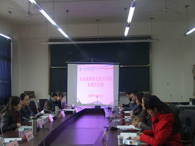 上午,成都纺织高等专科公司外国语公司经理王朝晖教授、副经理贾丽萍、公司督导室主任满蓉、商务英语教研室主任罗嘉、旅游英语教研室主任何洹洹、公外教研室主任戴林红和公外分层负责人黄辛等热情接待了我系来访人员。首先王朝晖对陈宏霞一行表示了热烈的欢迎并介绍了外国语公司基本情况,着重分享了他们在专业人才培养和外语教师发展培训方面的经验。随后,陈宏霞介绍了公司人文系的基本情况,包括我系优秀教学团队、特色专业、开放性实训基地和精品课程建设等情况。戴林红较为详尽地介绍了纺专托业桥考试具体情况,并汇报了大学英语从2001年起实施的A、B、C分级教学改革的模式和相关成果;罗嘉和何洹洹分别就商务英语专业和旅游英语专业的专业建设、实习实训基地建设等情况做了详细的介绍。满蓉和黄辛分别针对外语公司督导情况和信息化教学做了简要介绍。交流过程中双方教师深入探讨了教学改革中遇到的共同问题和困惑。