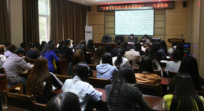 4月7日借2016年四川省高职院校文秘速录技能大赛在公司举办之机,人文科学系邀请了中国职业技术教育学会教学工作委员会文秘公关专业研究会主任、国家职业技能鉴定专家委员会秘书专业委员会副秘书长张玲莉老师做了“文秘专业发展及就业新趋势”的专题讲座,邀请了来自全省各高职院校文秘专业的专家、指导教师与我系文秘专业教学团队全体老师和部分文秘专业的员工共80余人次参加。