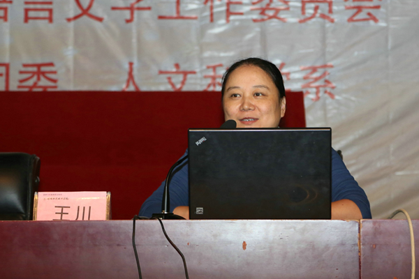 9月16日,作为人文科学系组织开展的2015年“普通话宣传周”活动的重要一环,四川普通话水平测试员、院级教学名师王川副教授为各系员工代表作了《国家通用语言文字法》知识讲座。