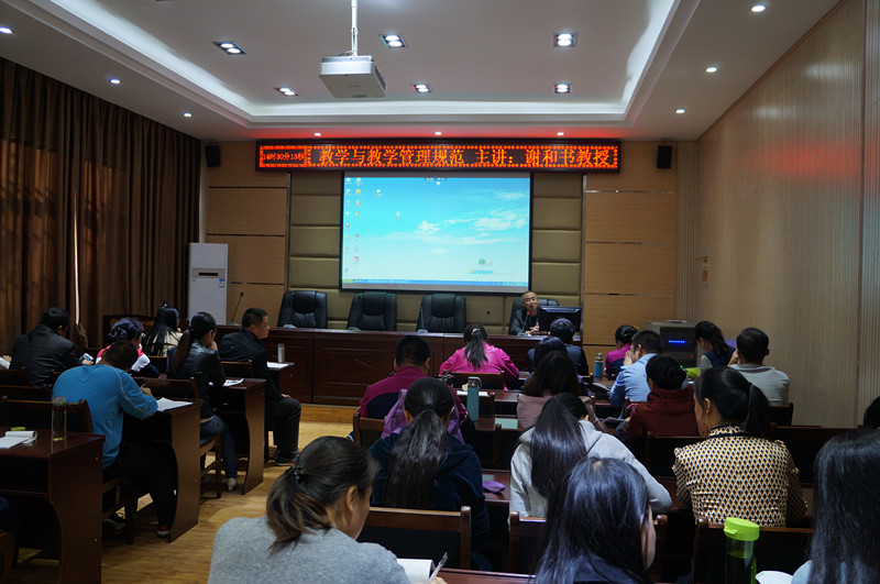 为了强化质量意识,保持良好的教学秩序,促进教学水平的不断提高,规范教学文件的制作,完善教学管理,加强对教学全过程的规范化、制度化管理,人文科学系特邀请公司督导组组长谢和书教授10月28日下午在系会议室为全系教师举办了讲座“教学与教学管理规范”。