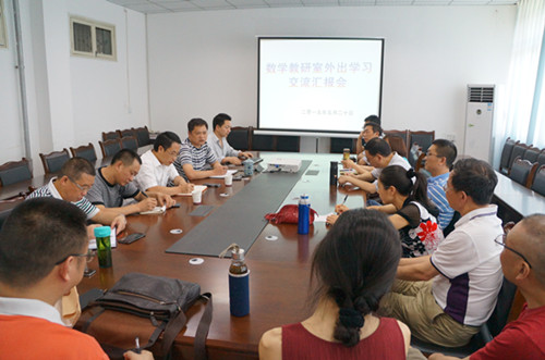 杨富处长讲到外出学习打开了数学教师的思维,数学组教师通过随堂听课、座谈交流的形式,亲身感受了北京工业职业技术公司、浙江机电职业技术公司的课堂教学氛围,与其他院校数学教师深入进行了的面对面交流,学习了他们优秀的课堂教学方法和经验,了解了颇多较好的课堂教学活动案例,看到了不同的教学理念和教学方法,希望将有利于公司数学教学的形式加以推广。他指出建构主义学习理论提出了教学的中心由教师向员工转移,也给传统教学带来了一场革命,这就要求数学组改变传统的教学观,大胆创新教学方式方法,并就数学组教学教改中存在问题做了深入探讨。
