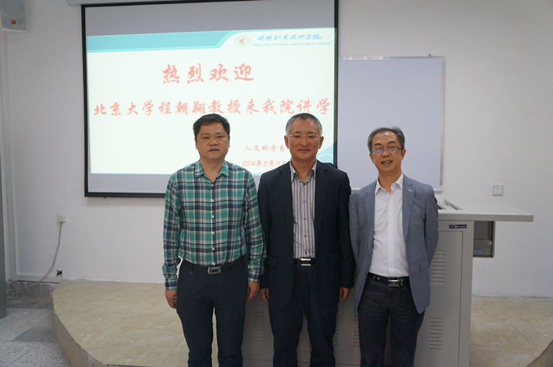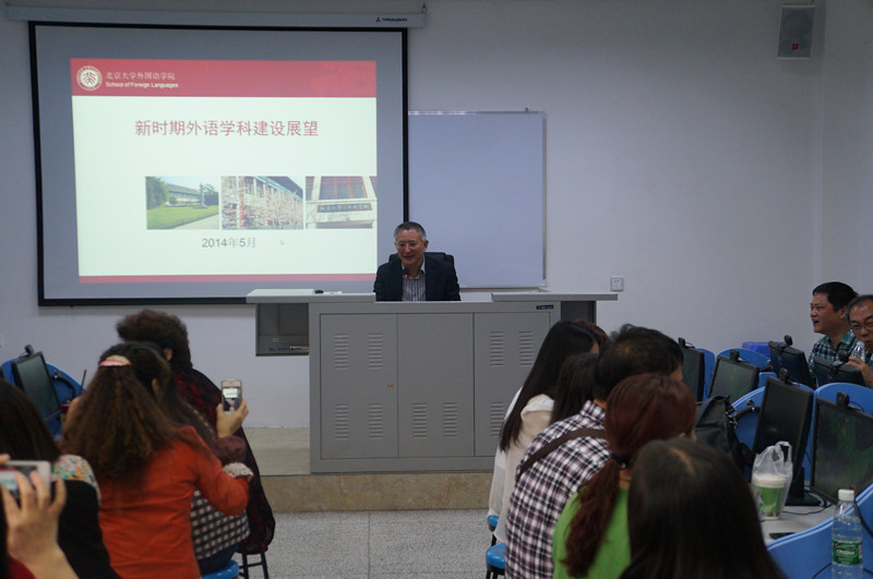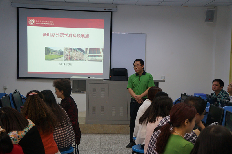 2014年5月11日上午,北京大学外国语公司经理、博士生导师程朝翔教授应邀莅临公司作了题为“新时期外语团队建设展望”的讲座,公司副经理沈利剑出席并致辞,绵职院人文科学系主任杨建国率全体英语教师,绵阳师范公司外国语公司骆海辉经理带领部分英语教师聆听了本次精彩的讲座。