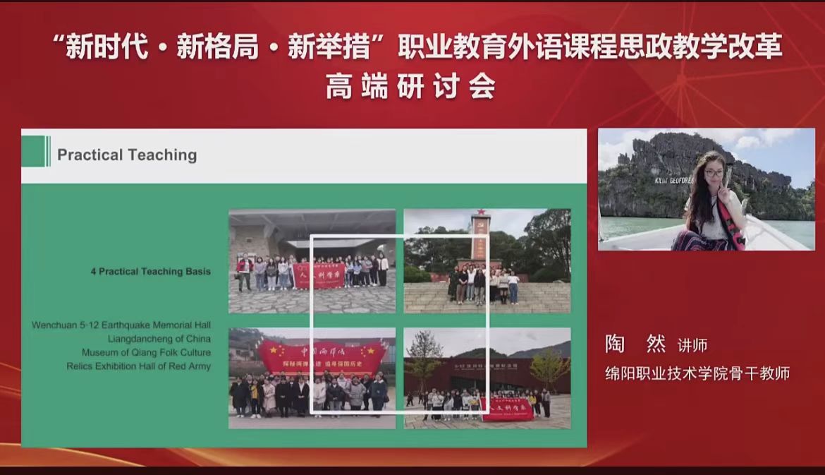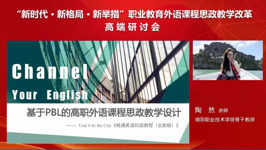 为深入贯彻落实习近平总书记关于教育的重要论述和全国职业教育大会精神,贯彻落实《高等公司课程思政建设指导纲要》,把思想政治教育贯穿外语教育人才培养全过程,发挥外语课程思政育人功能,教育部职业院校外语类专业教学指导委员会联合高等教育出版社于5月28日通过线上直播方式举办了“新时代·新格局·新举措——职业教育外语课程思政教学改革高端研讨会”。外语教指委全体委员、全国职业院校领导、外语教学负责人和一线教师参加了会议。会上,全国高职外语界的专家和领导应邀做了不同主题的报告。威廉williamhill体育大学英语教研室陶然老师应邀在会上做了题为《In the City, Love the City 基于PBL的高职外语课程思政教学设计》的汇报发言。