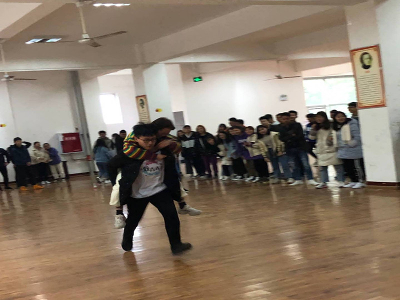 活动采取男生背女生接力跑的方式,总共有6支参赛队合计120人参加。每支参赛队由十名男生和十名女生组成。最后以十组选手跑完规定的距离用时最短为获胜者。