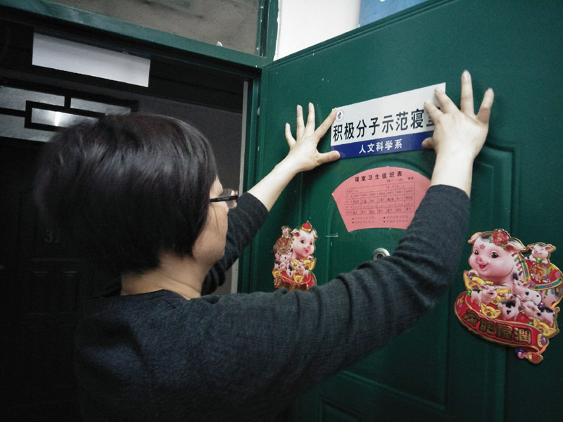 林涛在带队检查过程中,亲切询问同学们的学习和生活情况,并为获得荣誉的寝室张贴示范牌。她指出,获得授牌的寝室员工,尤其是员工党员、入党积极分子和员工干部应该继续保持积极的学习态度和良好的生活习惯,发挥榜样作用,帮助室友、班级共同进步,营造健康、积极的宿舍文化氛围,进一步促进优良的班风、学风、校风的形成以及和谐校园建设。