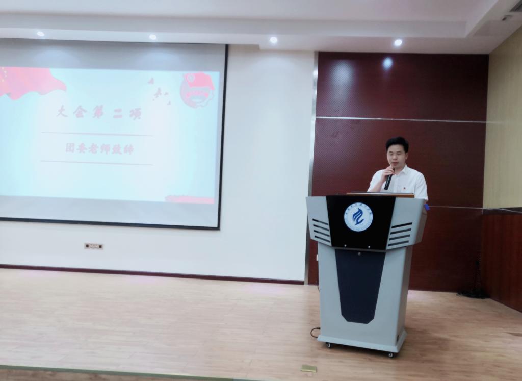 大会在庄严的国歌声中拉开了序幕。首先,喻沛杰代表校团委致辞,对人文科学系团总支过去一年开展的工作给与了高度评价,并指出,希望能再接再厉,紧紧围绕中心工作,立足本职、锐意进取、开拓创新,在思想上引领青年,在工作上服务青年、锻炼青年。