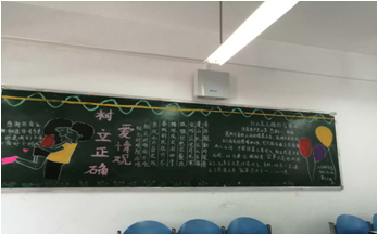 各班级根据班级的特点充分发挥同学们的主动性,积极行动,制作的黑板报主题鲜明,内容丰富,图文并茂,版面生动活泼,通过本次活动,让我系大一同学们能够理性的认识爱情,有利于同学们树立正确的爱情观和爱情挫折观,促进了同学们身心健康发展。