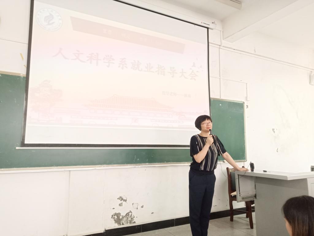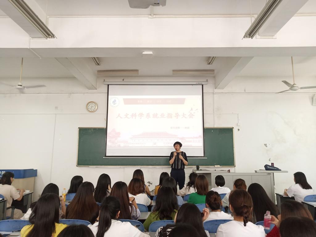 6月5日下午两点,人文科学系就业指导大会于综合楼F栋111教室顺利召开,由人文科学系党总支副书记林涛作为指导老师主持会议,人力资源管理专业和应用英语专业全体员工参会。