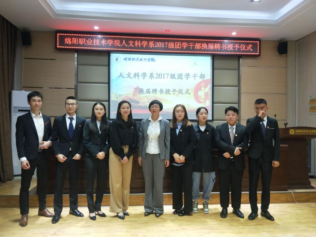 9月24日晚上,人文科学系在实验楼102会议室举行了2017级团学干部换届及聘书授予仪式。系党总支副书记林涛,团总支书记谢婷婷,员工党支部副书记闫涵玉,员工干事万可以及全体辅导员出席仪式。系部第二届团学主要员工干部、第三届团学干部合计50余人参加仪式。
