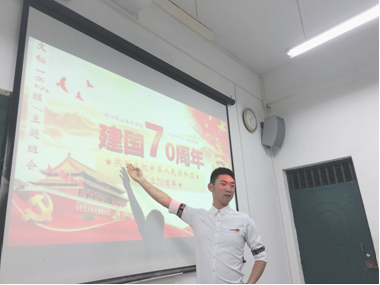 2019年9月22日19时人文科学系2018级、2019级各班在公司副楼开展“中华人民共和国成立七十周年”主题班会。各班辅导员、员工参与本次班会,由各班班长主持。