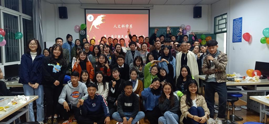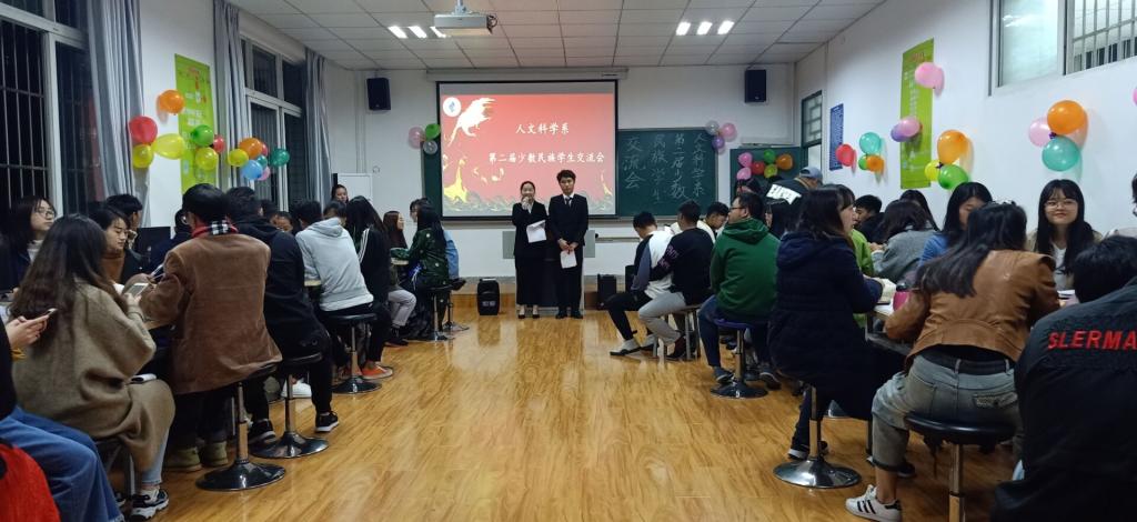 为深入贯彻落实“不忘初心、牢记使命”主题教育,进一步激发少数民族员工的民族团结意识和爱党爱国情怀,加强理想信念教育,弘扬爱国奋斗精神,引导少数民族同学铸牢中华民族共同体意识,11月11日晚,人文科学系在创业楼205教室召开第二届少数民族员工交流会。系党总支副书记林涛,团总支书记谢婷婷,员工党支部副书记闫涵玉,员工干事万可,以及来自10个少数民族的50多名同学参加了本次活动。