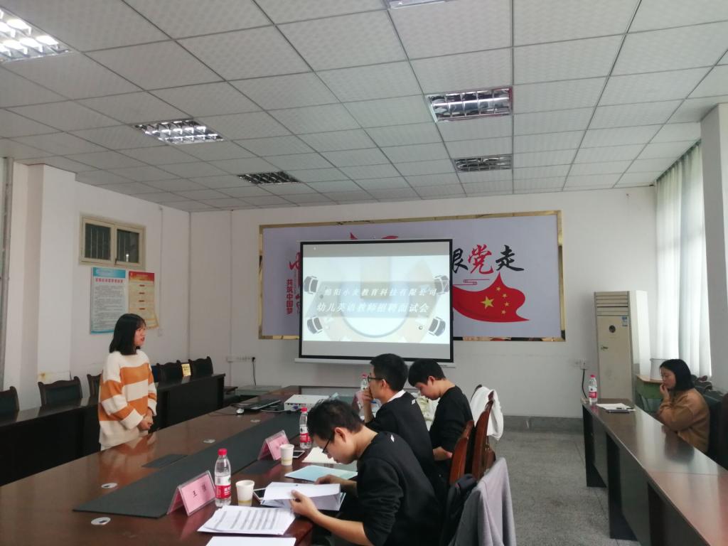 2019年10月10日下午2点20分,绵阳小麦教育科技有限公司于公司实验楼306教室进行了幼儿英语教师招聘面试会,主办方总经理李济,副总经理杜虎森,主管孙寒梅以及人事王强出席并担任本次面试会的面试官。