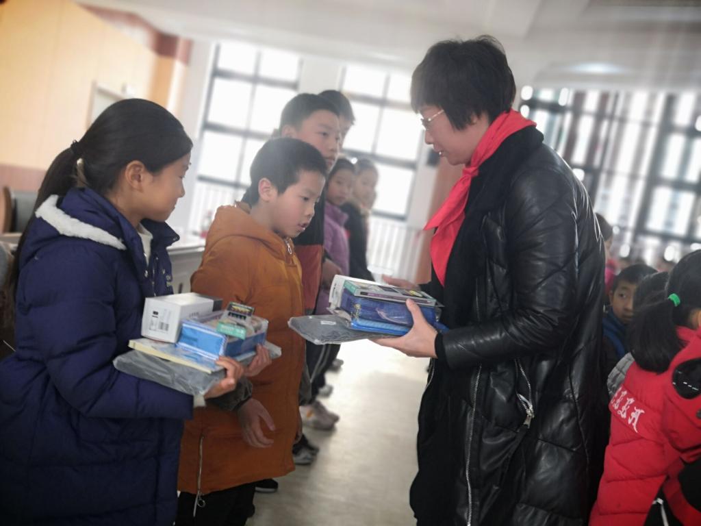 捐赠现场,人文科学系党总支副书记林涛将书包、文具盒、书籍、水杯等物品送到20名孩子手上。她鼓励孩子们从小树立远大理想,克服困难,多读书、读好书,用优异的成绩回报社会的关心关爱。