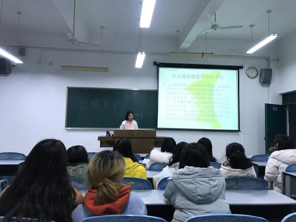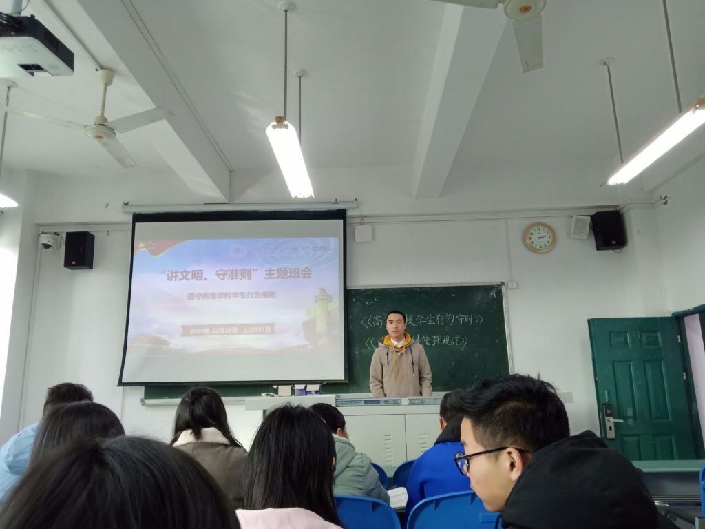 讲文明,遵守则,做新时代青年。1222日晚,人文科学系组织大一、大二各班同学召开了“讲文明、遵守则”主题学习班会。
