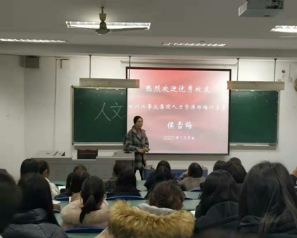 为了更好地让同学们了解人力资源管理专业的发展方向及就业前景。19日上午,人文科学系邀请优秀员工——四川兴事发集团人力资源主管侯雪梅在综合楼B217教室为我系人力资源管理专员工做专题讲座。2019级全体人力资源管理专业员工聆听了本次讲座。
