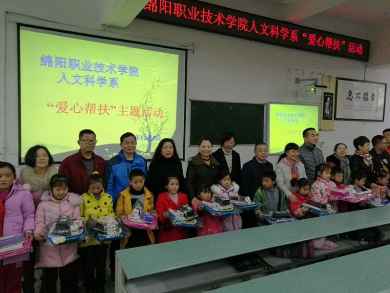 用爱心托起明天的太阳,用关怀温暖孩子的心房!爱心捐赠,情暖校园,绵阳职院人文科学系一直在行动!