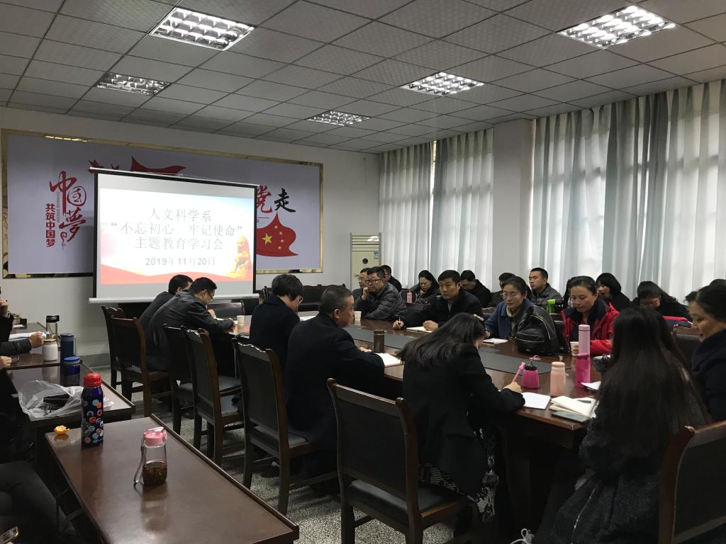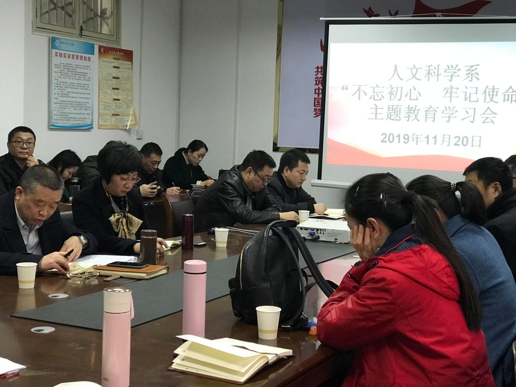 20191120日下午4点,人文科学系党总支在实验楼306会议室开展了“不忘初心、牢记使命”主题教育专题学习会。人文科学系全体教职工参加会议。