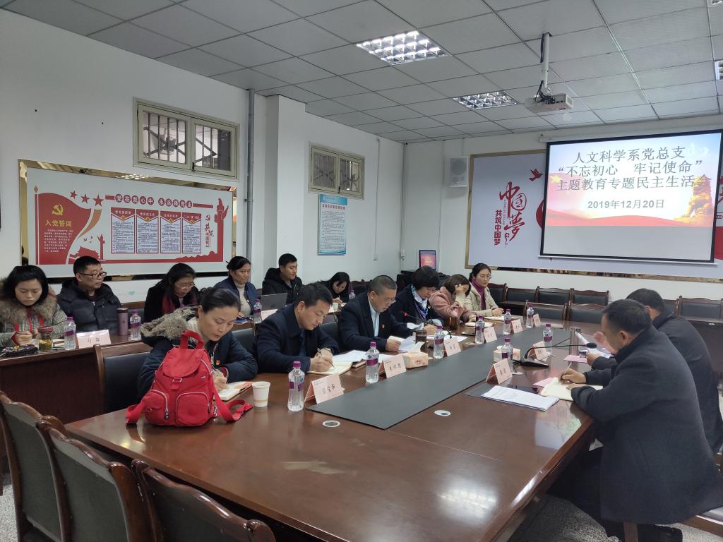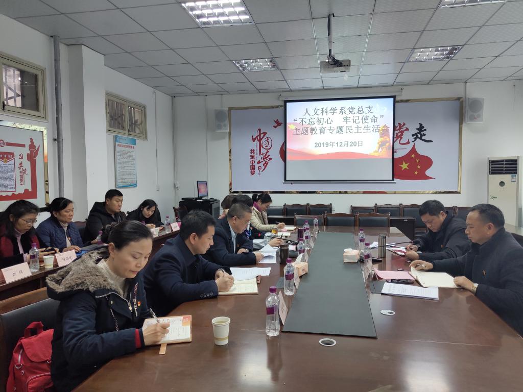 2019年12月20日14:30,人文科学系党总支在实验楼306会议室召开了“不忘初心、牢记使命”主题教育专题民主生活会。公司党委常委、副董事长杨建国,公司主题教育指导组组长、机关第二党总支书记廖骏到会指导。系总支委员、各教研室党支部书记及群众代表参加会议。会议由系党总支书记杨富主持。