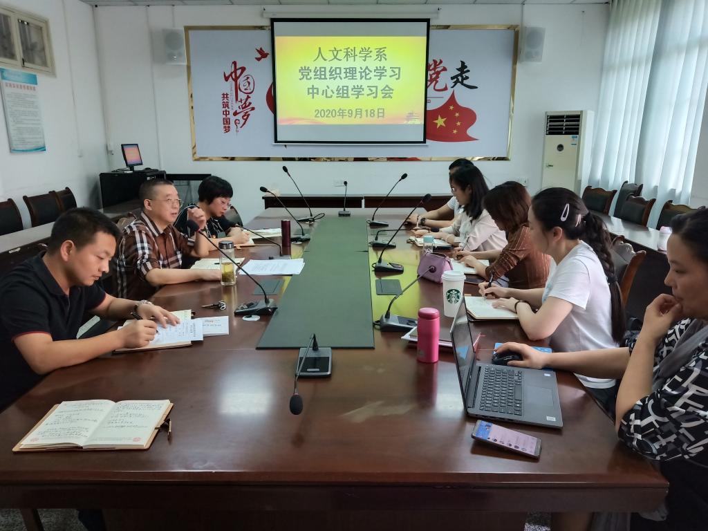 2020918日下午在实验楼306,人文科学系召开党组织理论学习中心组学习会,系党总支委员、支部书记参会,会议专题学习《习近平谈治国理政》第三卷。会议由系党总支书记、系主任杨富主持。