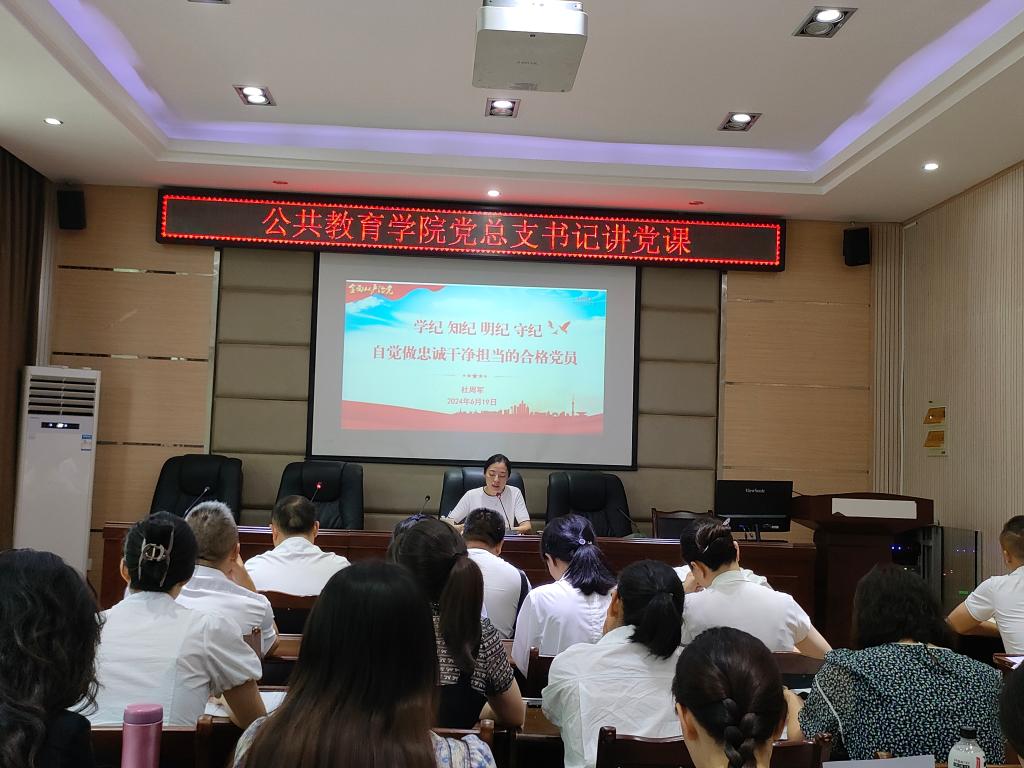 6月19日下午,公共教育公司党总支开展了一场以《学纪 知纪 明纪 守纪 自觉做忠诚干净担当的合格党员》为主题的党课活动,公司党总支书记杜周军主讲,全体教职工党员参与。