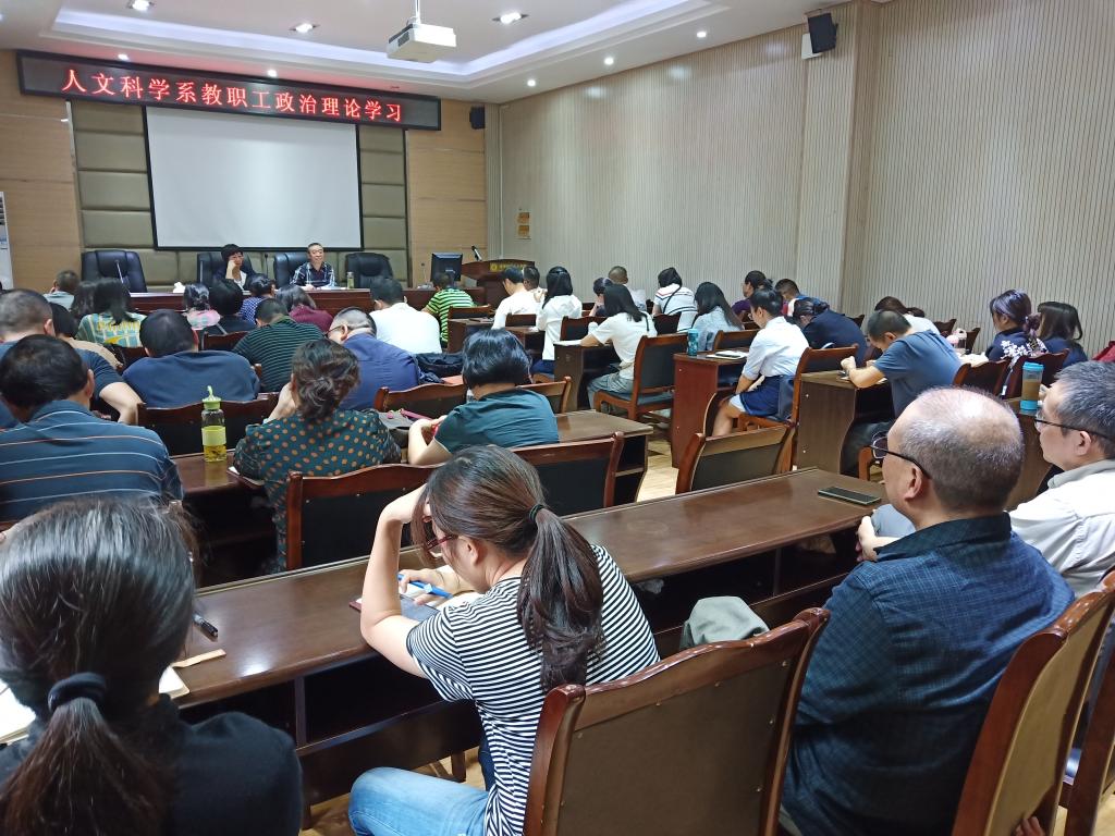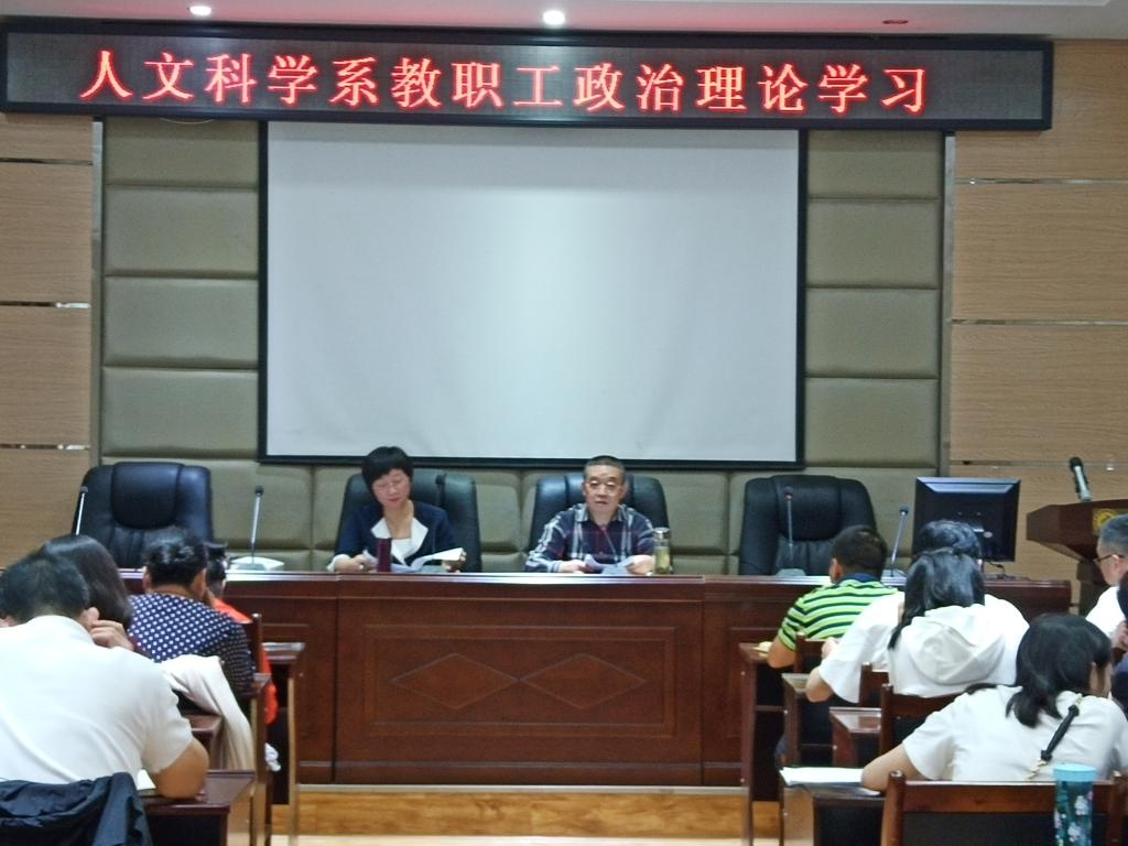 2020年9月24日下午在实验楼一楼会议室,人文科学系召开全体教职工政治理论专题学习会,会议由系党总支书记、系主任杨富主持。