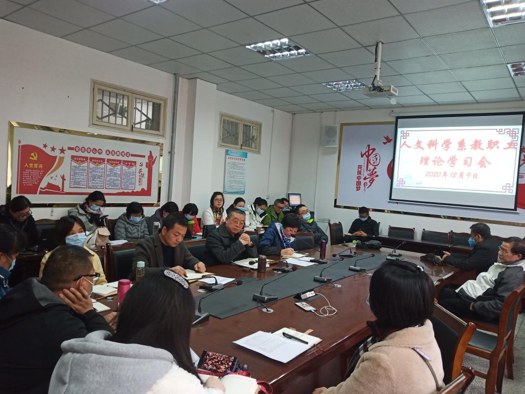 2020年12月9日下午在实验楼三楼会议室,人文科学系召开全体教职工学习会,会议由系党总支书记、系主任杨富主持。