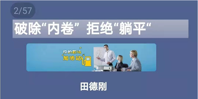田德刚老师针对职场“内卷”和“躺平”两种典型问题,开展了“破除‘内卷’,拒绝‘躺平’”主题培训。他一方面从管理角度分析了“内卷”产生的原因,并指出破除方法;一方面从员工角度,分析了普通员工和优秀员工的差距,他鼓励员工努力奋斗,拒绝“躺平”。